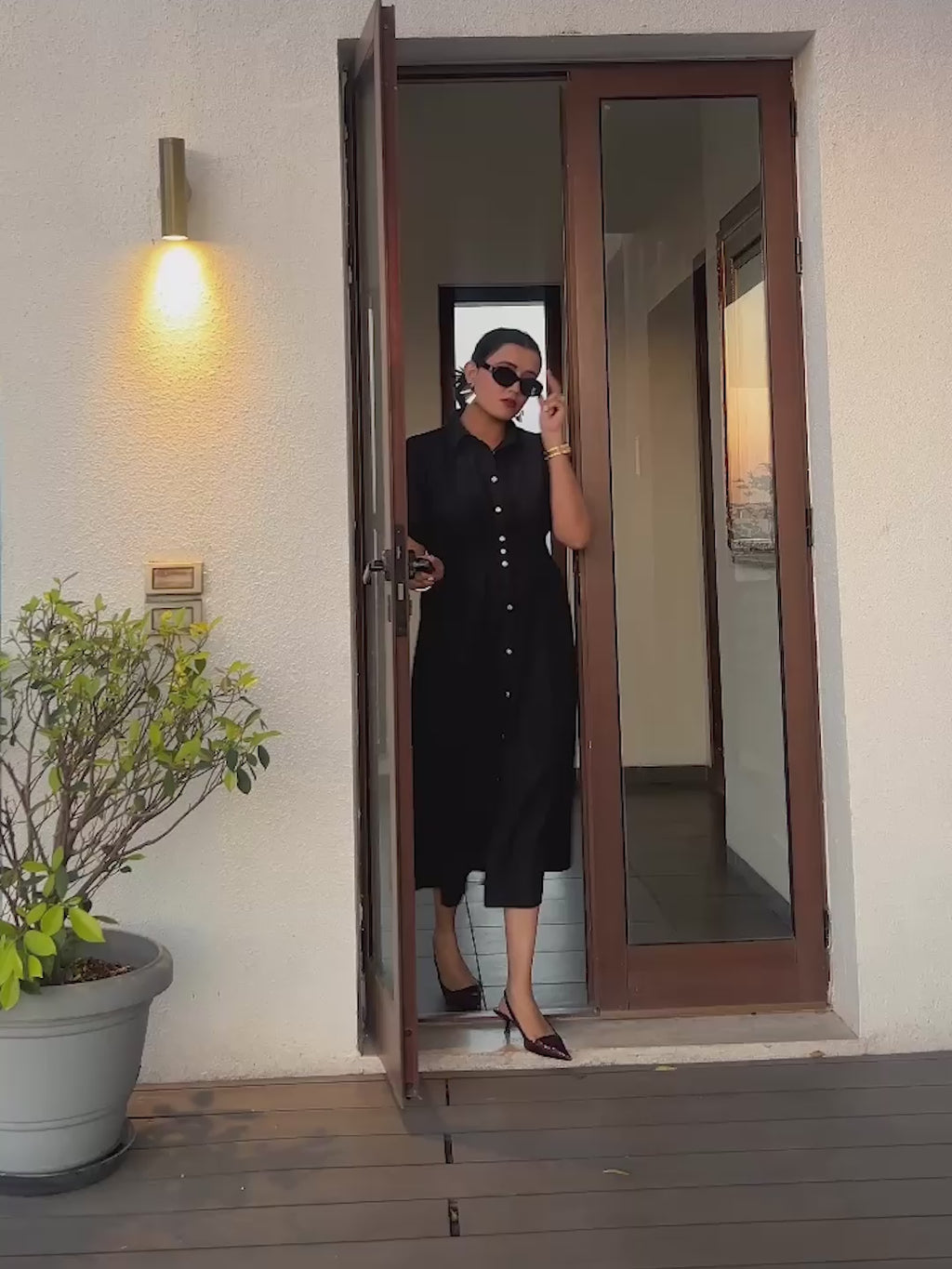 -- Black Cinched Waist Button Down Maxi Shirt Dress