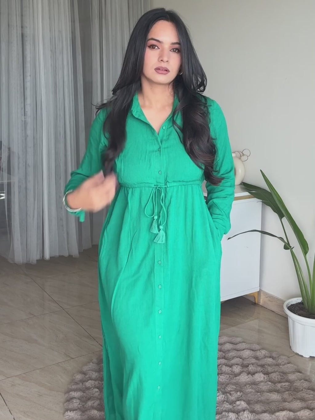 - Roll up sleeve detailing, side slits, drawstring at waist embellished with cotton tassel