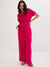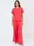 Cotton Gauze Deep Purple Round Neck Top With Straight Pant