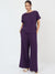 -- Cotton Gauze Deep Purple Round Neck Top With Straight Pant