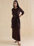 -- Coffee Brown Cotton Knit Tie-Up Maxi Dress