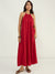 CloudComfort Gauze Red Halter Maxi Dress